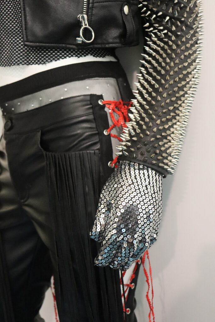 A standout feature of this costume is undeniably the fully studded sleeve. Given the significance of Bucky Barnes’s metal arm in his original costume, it was crucial to seamlessly integrate it into the reimagined look. For this reason, I hand-studded the entire sleeve with metal spike studs and created a sequin glove to extend the metallic appearance from shoulder to fingertip.